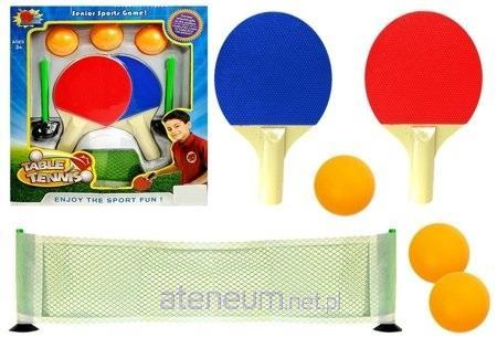 Zestaw do Tenisa Stołowego Paletki Siatka Piłeczki Mini zestaw do gry w ping ponga to idealne rozwiązanie dla najmłodszych dzieci. Jest bardzo łatwy w montażu, rozkładana siatka przyczepi się na przyssawkach do każdego podłoża. Ping Pong to gra zręcznościowa dla 2 lub 4 osób polegająca na szybkim odbijaniu piłeczki w taki sposób aby przeleciała ona na drugą połowę stołu. Wystarczy siatkę umieścić za pomocą przyssawek na stole, zebrać 2 graczy i za pomocą niewielkich paletek rozegrać jeden z wielu emocjonujących meczy. Niewielkie gabaryty zestawu pozwalają na łatwe jego przechowanie. Elementy zestawu: - 2 rakietki - 3 piłeczki - siatka - 2 słupki z przyssawkami Wymiary elementów zestawu: - rakietka: 15.5 cm x 9.5 cm x 0.5 cm - piłeczka: średnica - 4 cm - siatka: 60 cm x 9 cm - słupek z przyssawką: wysokość - 10 cm Wymiary opakowania: 24 cm x 27 cm x 4.5 cm Zabawka przeznaczona jest dla dzieci powyżej 3. roku życia. Zestaw posiada certyfikat CE i jest zgodny z normą EN 71. Zapakowany jest w pudełeczko, dzięki czemu nadaje się idealnie na prezent.