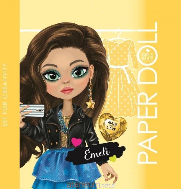Papierowa lalka do zabawy - Emeli. W środku znajdziesz wiele różnych strojów, w które możesz ją przebrać. Pokoloruj ją, a następnie wytnij z książeczki, potem ubierz - zaginając specjalnie zaznaczone krawędzie. Stroje mają wyraźne oznaczenia pokazujące, gdzie wyciąć, aby ubrania pasowały na lalkę. Baw się nimi opowiadając najróżniejsze historie. Potem możesz przebrać lalkę i zacząć zabawę od nowa. Wyprodukowano na Ukrainie.