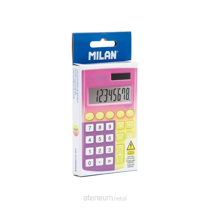 Kalkulator 8-pozycyjny kieszonkowy z miękkimi gumowymi klawiszami z kolekcji SUNSET. Kolor różowy, żółty i liliowy. 3 klawisze pamięci. Klawisz zmiany znaku +/-. Pierwiastek kwadratowy. Podwójne zasilanie: bateria 1,5V oraz bateria słoneczna. Automatyczne wyłączanie. Kalkulatory MILAN spełniają wymagania dyrektywy RoHS o ograniczeniach stosowania niektórych substancji niebezpiecznych w urządzenia elektrycznych i elektronicznych. Rozmiar kalkulatora: 9,7 x 6,2 x 0,8 cm. Pudełko kartonowe z zawieszką.