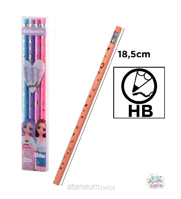 Ołówek grafitowy z gumką 4szt + temp.+ nakł. ASTRA