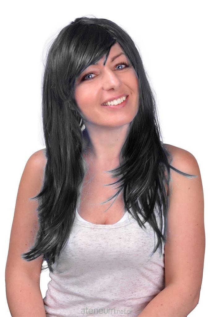 Peruka wykonana z włosów syntetycznych w kolorze czarnym. Długa fryzura z grzywką. Dopełnienie stylizacji, przebrania na bal karnawałowy, sylwestrowy, halloween. Długość włosów to około 50 cm. Peruka w rozmiarze uniwersalnym.