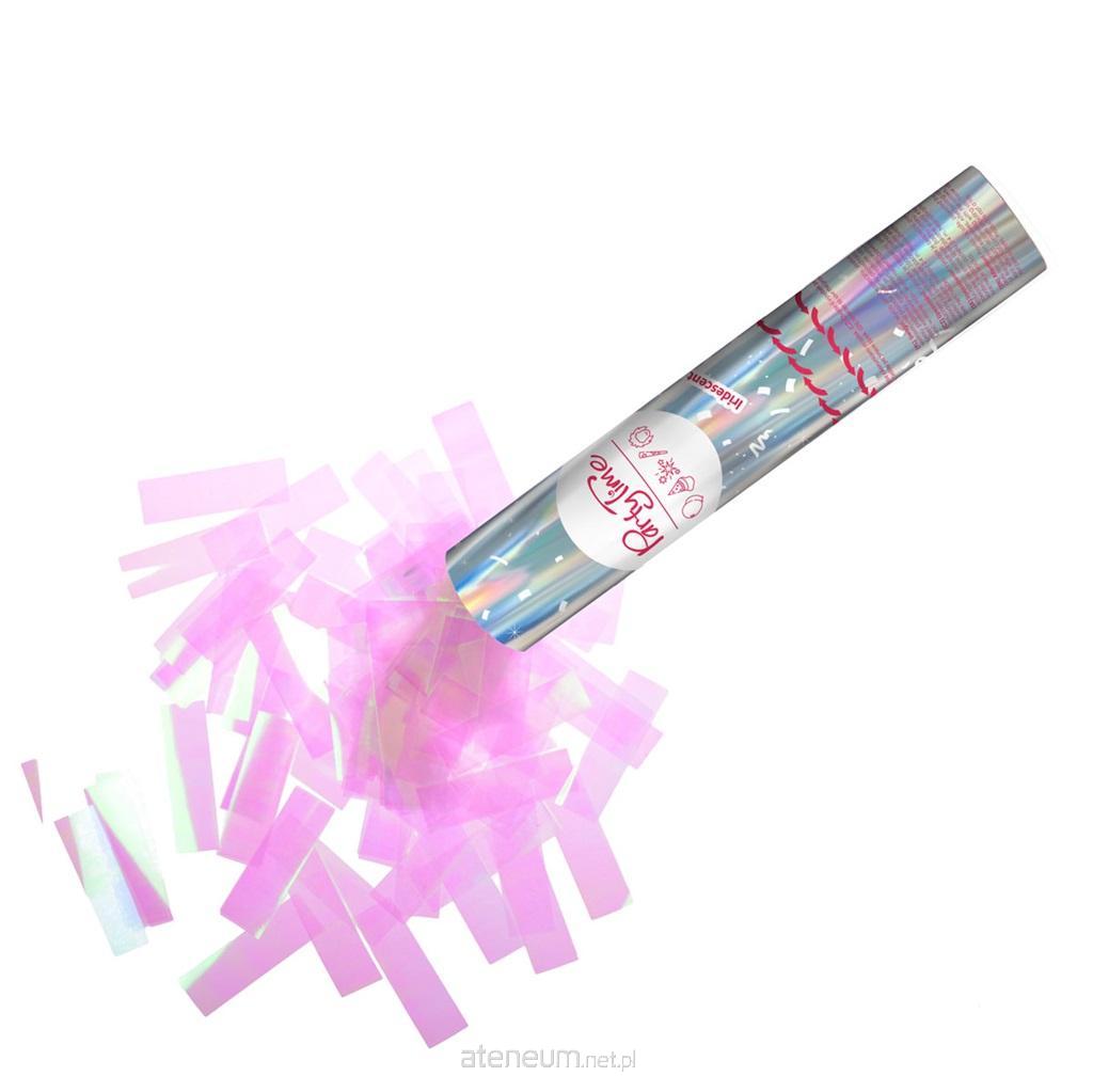 Wyrzutnia z foliowym konfetti, pięknie mieniącym się w zależności od kąta padania światła. Długość tuby: 20 cm. Przekręcenie denka zawierającego sprężynę uwalnia wyrzut konfetti na odległość 2 - 4 m.