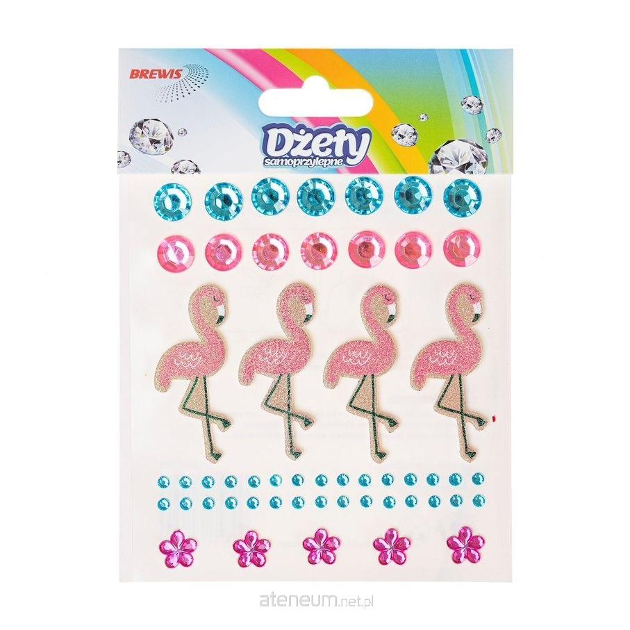 Dżety samoprzylepne flamingi i kwiatki rozmiar: mix ilość: 53 szt kolor: mix pastelowy