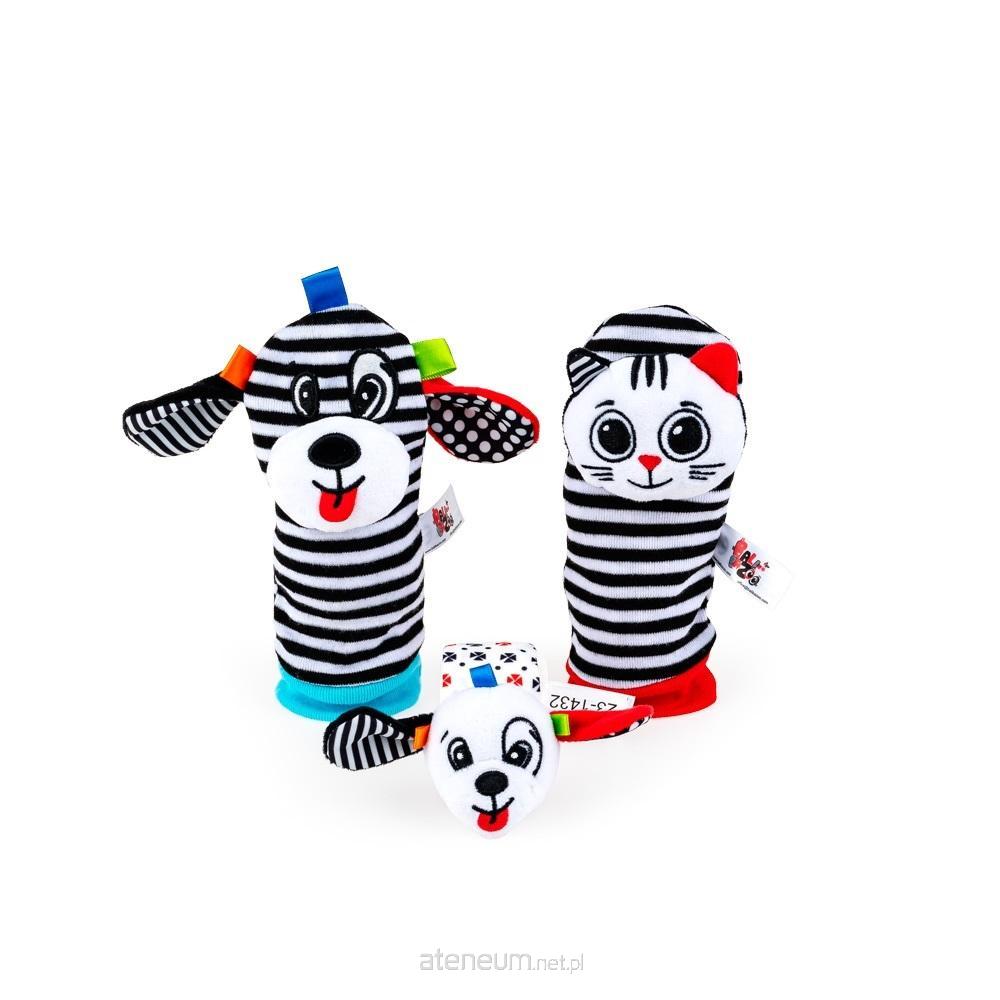 Grzechotanie na całego z parą obłędnie słodziutkich bransoletek! Obie grzechotki zapinane są na rzep, więc bez trudu można je zakładać i zdejmować z dziecięcych rączek. Jedną bransoletkę zdobi koala, a drugą szop, a z tego uroczego duetu można korzystać równocześnie lub oddzielnie, wybierając tę grzechotkę, którą w danym momencie maluszek interesuje się bardziej. Przy główkach zwierzaków znajdują się materiałowe mini metki, które stymulować będą zmysł dotyku bobasa, zachęcając go tym samym do sensorycznego odkrywania świata.