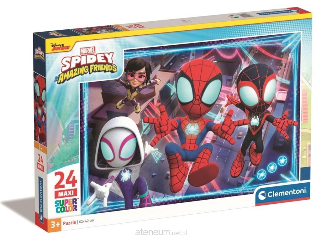 Puzzle 24 Maxi Super Kolor Marvel Spidey. Wyjątkowe barwy druku uzyskano dzięki wykorzystaniu technologii Super Kolor. Wymiar elementu zobrazowany na opakowaniu.