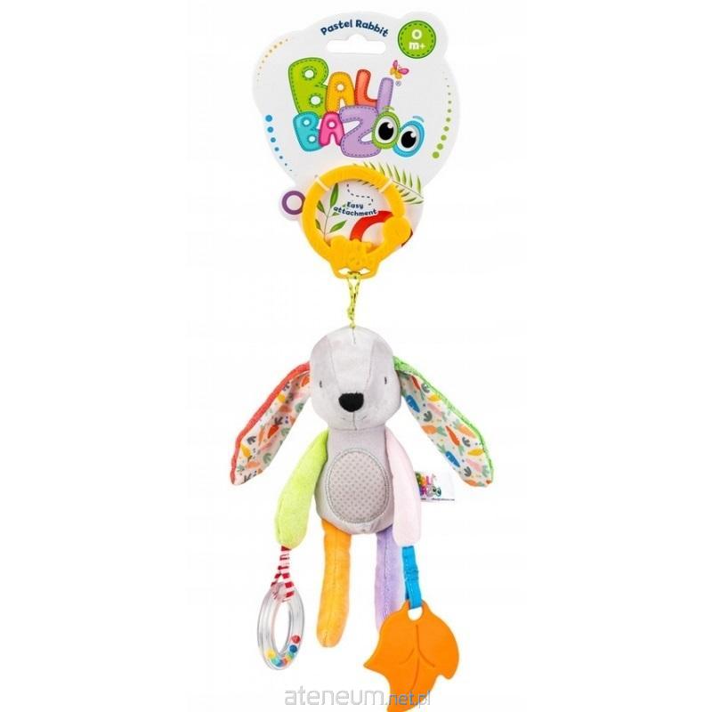 Króliczek w kompaktowym rozmiarze będzie idealnym towarzyszem pierwszych spacerków. Zabawka uszyta została z materiałów o zróżnicowanych wzorach i fakturach, dzięki czemu stymuluje zmysły malucha, zachęcając go do sensorycznego poznawania świata. Przy łapkach króliczka doczepione są dwie dodatkowe zabaweczki: miękki gryzak i grzechocząca obręcz z koralikami. Niewielki rozmiar zawieszki pozwoli mieć ją zawsze przy sobie, aby wszędzie mogła rozweselać malucha. Praktyczny uchwyt, w który wyposażony została zabawka, umożliwia jej łatwe przymocowanie w dowolnym miejscu.