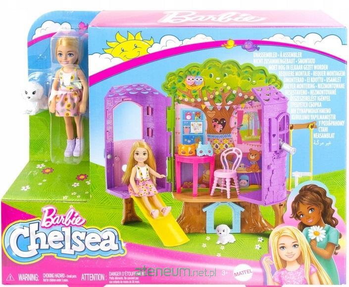 Barbie Chelsea Domek na drzewie Zestaw z lalką, pieskiem, mebelkami, zjeżdżalnią i ponad 10 akcesoriami HPL70
