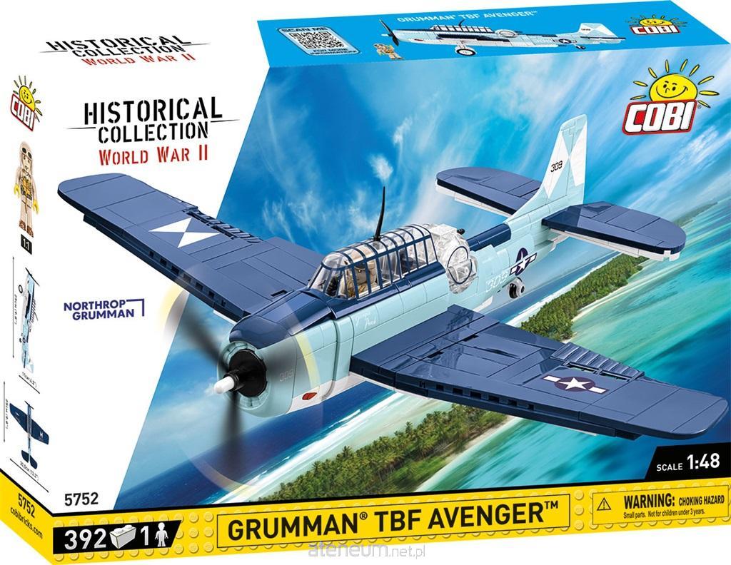Legenda lotnictwa Marynarki Wojennej Stanów Zjednoczonych! TBF Avenger został przez nas odwzorowany przy wykorzystaniu 392 klocków konstrukcyjnych COBI w modelarskiej skali 1:48. Teraz bez problemu możesz zbudować wsparcie dla swoich ogromnych bombowców COBI. Avenger to również idealne uzupełnienie kolekcji ogromnych okrętów od COBI! W zestawie znajdziesz tylko wysokiej jakości nadruki nawiązujące do historycznego malowania samolotu. Na szczególną uwagę zasługuje bardzo dobrze odwzorowana kabina, w której mieści się pilot. Zastosowaliśmy również nowy kolor klocków w kolorze jasnoniebieskim. Teraz nasze klockowe samoloty wyglądają jeszcze lepiej! Model posiada podwozie z obracającymi się kołami, śmigło oraz dostęp do kokpitu pilota. Licencyjny Avenger z klocków COBI to świetny model, który zapoczątkuje nie jedną kolekcję wśród pasjonatów lotnictwa i techniki wojskowej! To również model idealny na dobry początek przygody z polskimi klockami konstrukcyjnymi COBI! Buduj historię, klocek po klocku! North American TBF Avenger to amerykański pokładowy samolot torpedowy używany głównie podczas II wojny światowej. Zaprojektowany przez Grumman Aircraft Engineering Corporation, TBF Avenger był kluczowym elementem amerykańskiego lotnictwa morskiego podczas walk na Pacyfiku. Wprowadzony do służby w 1942 roku, samolot był używany do atakowania celów nawodnych, zwłaszcza okrętów wroga. Jego trzyosobowa załoga składała się z pilota, strzelca pokładowego i operatora. TBF Avenger był uzbrojony w karabin maszynowy oraz mógł przenosić torpedy, bomby i rakiety. Jego udział w bitwie pod Midway w 1942 roku był kluczowy dla sukcesu amerykańskiego lotnictwa morskiego. Po zakończeniu II wojny światowej TBF Avenger był stopniowo zastępowany nowszymi konstrukcjami, ale pozostał w użyciu do lat 60. XX wieku. Samolot ten zyskał sławę jako niezawodna maszyna bojowa, zdolna przetrwać nawet ciężkie uszkodzenia i powrócić na pokład lotniskowca! 392 wysokiej jakości elementy, wyprodukowane w UE przez firmę z ponad 20-letnią tradycją, spełniają normy bezpieczeństwa dotyczące produktów dla dzieci, w pełni kompatybilne z innymi markami klocków konstrukcyjnych, klocki z nadrukami nie odkształcają się i nie bledną w czasie zabawy czy pod wpływem temperatury, czytelna i intuicyjna instrukcja oparta na rysunkach i ikonach, samolot w skali 1:48 figurka pilota Wymiary modelu (dł x sz x wys): 250mm x 335mm x 110mm
