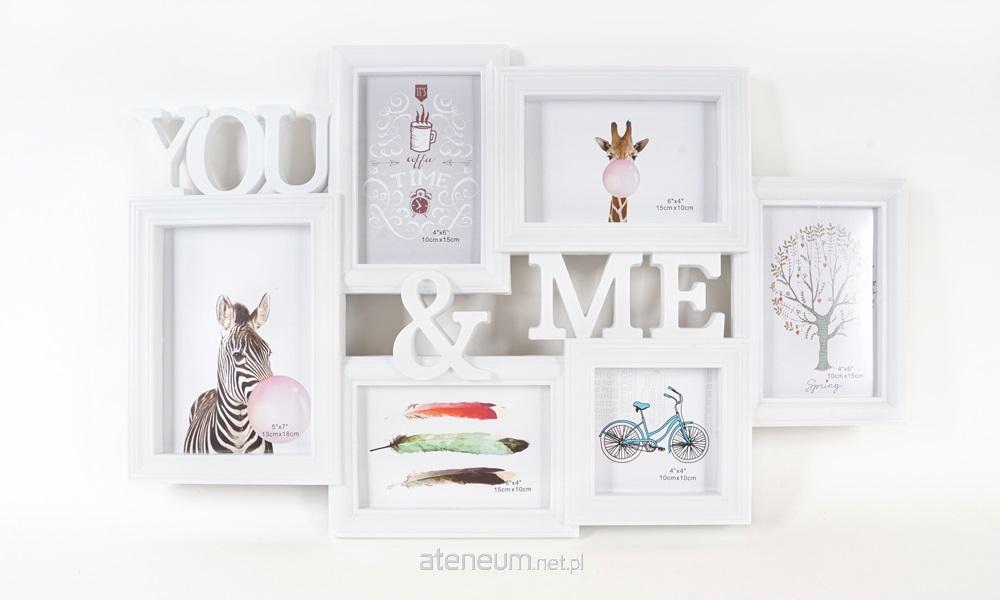 Plastikowa ramka na 4 foto 10 x 15 cm, 1 foto 10 x 10 cm a 1 foto 13 x 18 cm, rozmiar ramki 57 x 36 cm, do zawieszenia