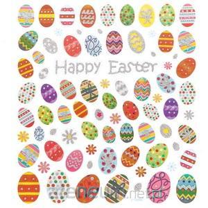 Arkusz kolorowych naklejek z motywem kolorowych pisanek wielkanocnych.