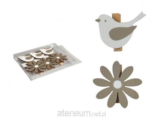 Klamerki ptak+kwiat - doskonała dekoracja do domu lub ogrodu. Opakowanie zawiera: - 6 szt. Dekoracji: 3 szt. ptaków i 3 szt. kwiatków Wymiar: 3,5 cm - 4,5 cm Dekoracja ma klamerkę do przypięcia. Wymiar: 45mm x 45mm x 12mm (szer. x wys. x gł.)