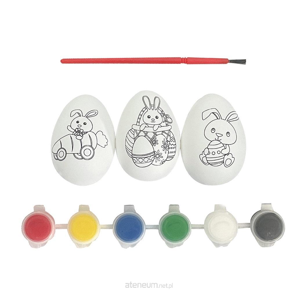 staw 3 jajeczek do malowania ze wzorami. W zestawie znajdują się farbki oraz pędzelek. Angażująca zabawa w malowanie pisanek. Idealne do zabawy w domu, szkole czy przedszkolu. Wymiary pisanki: 4x6 cm.