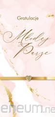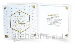 Po złożeniu format kartki DL, wyjątkowe złocenia, w środku życzenia i kieszonka na pieniądze. Dodatkowa koperta
