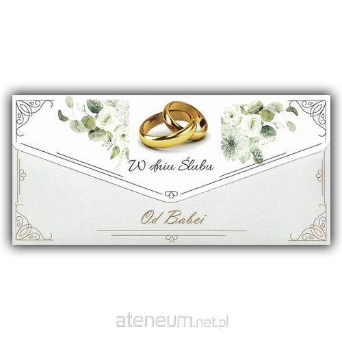 Po złożeniu format kartki DL, wyjątkowe złocenia, w środku życzenia i kieszonka na pieniądze. Dodatkowa koperta