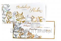 Po złożeniu format kartki DL, wyjątkowe złocenia, w środku życzenia i kieszonka na pieniądze. Dodatkowa koperta