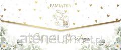 Po złożeniu format kartki DL, wyjątkowe złocenia, w środku życzenia i kieszonka na pieniądze. Dodatkowa koperta