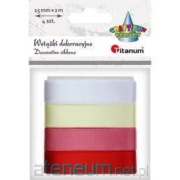 Wstążki satynowe 15 mm/2 m, 6 kolorów: biały, jasnożółty, ciemnoróżowy, czerwony.