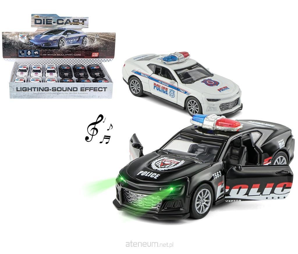 Metalowy model samochodu policyjnego ze światłem i dźwiękiem.