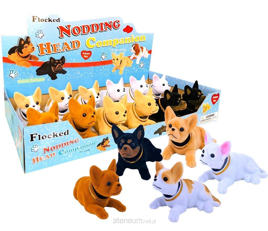 Piesek z ruszającą się głową pokryty materiałem - floką.