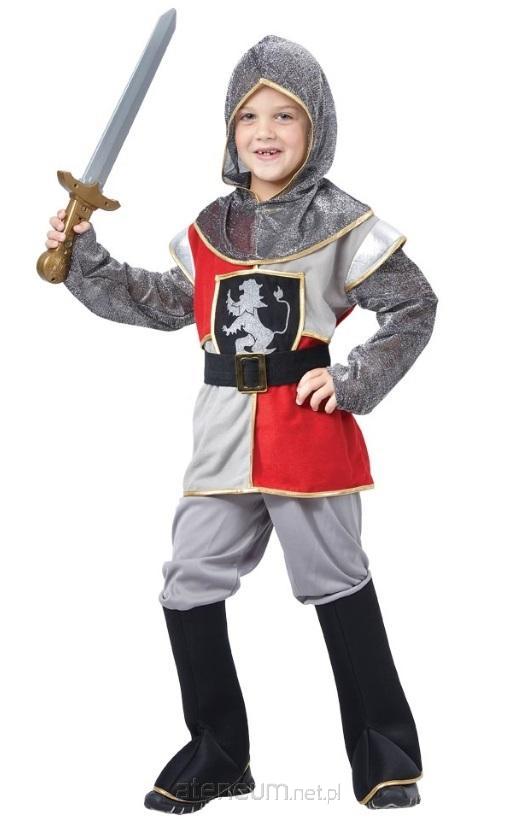 Strój Rycerz: tunika, kaptur, pasek, spodnie z nakładkami na buty,