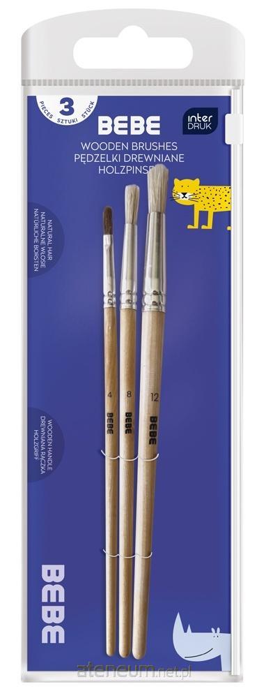 Zestaw 3 pędzelków o różnych szerokościach i kształtach końcówek. Naturalne włosie. Drewniany trzonek.