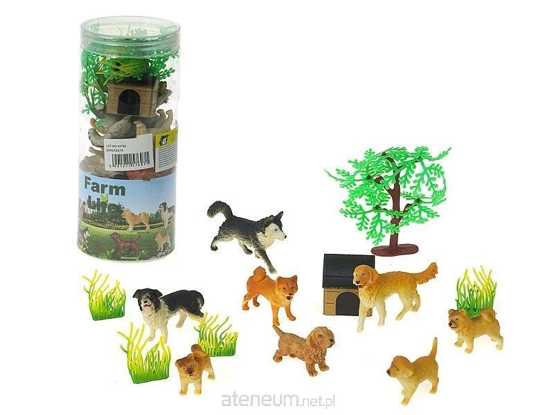 Zestaw 8 piesków, buda, drzewka, w tubie; 18x8x8cm, PVC