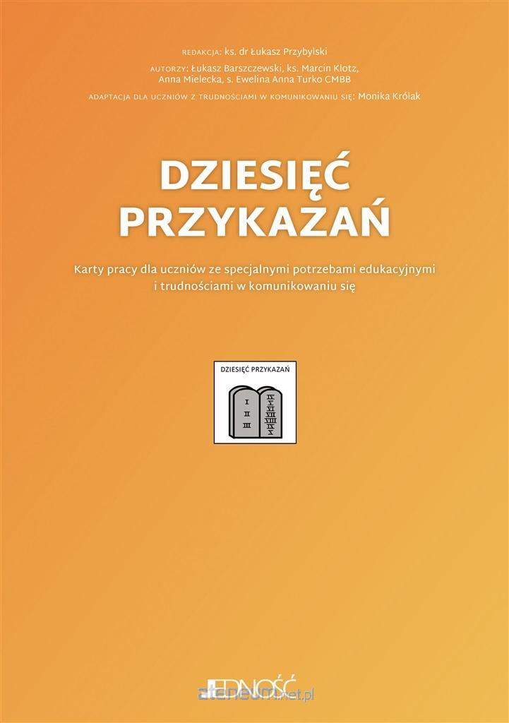 Karty pracy przygotowane z myślą o wszystkich, dla których istotne jest religijne wychowanie dzieci i młodzieży z niepełnosprawnością intelektualną. Za ich pomocą można wprowadzić uczniów w moralność chrześcijańską, omawiając poszczególne przykazania Dekalogu i wyjaśniając ich praktyczne zastosowanie w życiu człowieka wierzącego. Coraz lepsze rozumienie przykazań pozwoli uczniom bardziej świadomie i samodzielnie oceniać moralne aspekty różnych sytuacji życiowych.