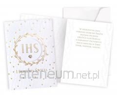 Po złożeniu format kartki DL, wyjątkowe złocenia, w środku życzenia i kieszonka na pieniądze. Dodatkowa koperta