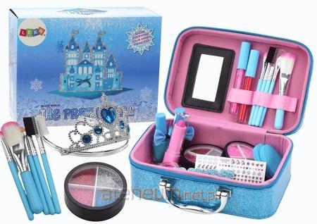 Zestaw Kosmetyków w Kuferku Do Makijażu Paznokci Korona Niebieski Zestaw kosmetyków w uroczym kuferku, który zachwyci każdą młodą damę swoim wyglądem i zawartością. Kuferek wykonany został z pięknego, błyszczącego tworzywa w odcieniu niebieskim, a ozdobna gwiazdka śnieżna dodaje mu wyjątkowego uroku. Po otwarciu kuferka zostaniesz zaskoczona bogactwem kosmetyków, które ukryte są w środku. Znajdziesz w nim wszystko, czego potrzeba do stworzenia idealnego looku - od różnorodnych odcieni błyszczyków, przez lakiery do paznokci po inne niezbędne produkty do makijażu. Pozwoli to Twojej małej miłośniczce mody poczuć się jak prawdziwa gwiazda salonów urody. Dodatkową niespodzianką w tym zestawie jest urocza srebrna korona z niebieskimi diamencikami, która doda uroku każdemu makijażowi i sprawi, że każda mała dama poczuje się jak prawdziwa królowa. Ten wyjątkowy zestaw kosmetyków nie tylko rozwija kreatywność i wyobraźnię, ale także uczy dbałości o siebie i własny wygląd. Zestaw zawiera: - korona - 5x pędzelków - cienie do powiek - brokaty do powiek - 2 szminki - 2x błyszczyki - 2x błyszczyki w słoiczku - 2x lakiery do paznokci -2 x gąbeczki - separator - pilniczek - naklejki na paznokcie Wymiary kuferka: 20cm x 15cm x 7,5cm Wymiary opakowania: 21cm x 16cm x 8,5cm Posiada certyfikat CE, ponadto jest zgodny z normą EN71. Przeznaczony dla dzieci powyżej 8 roku życia.