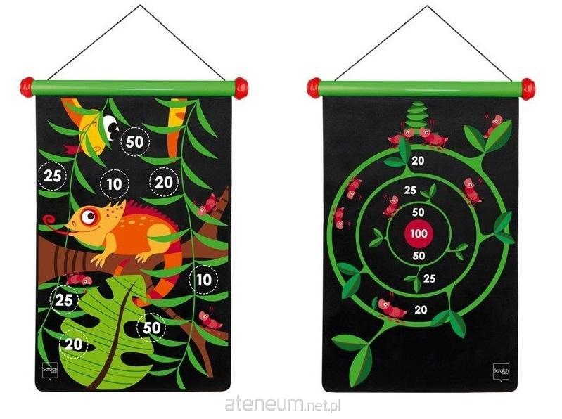 Dwustronne magnetyczne rzutki z motywem Kameleonem. Magnetyczna tarcza to bezpieczna zabawa zarówno dla młodszych jak i starszych wielbicieli rzutek. Gra polega na jak najbardziej precyzyjnym trafieniu rzutkami w tarczę, gdzie rozmieszczono punkty za każdy oddany rzut. Tarcza jest dwustronna co pozwala na zabawę na dwa różne sposoby.