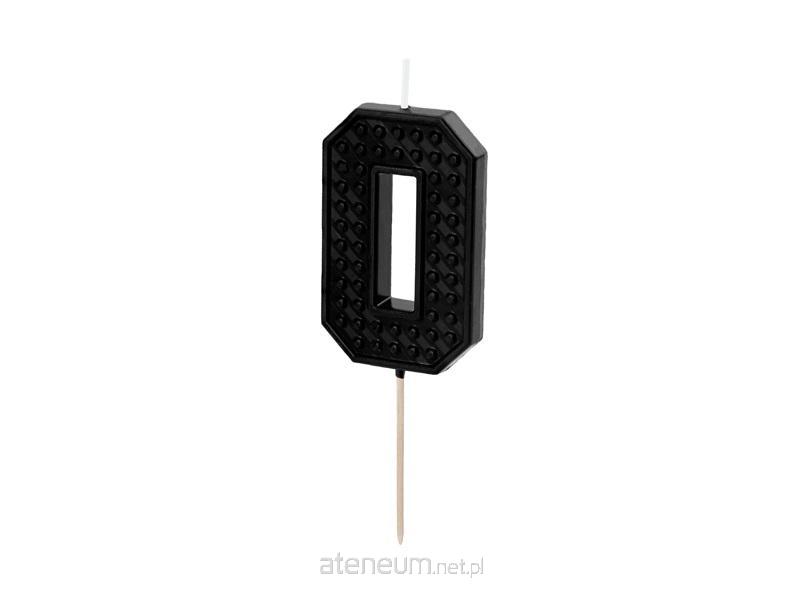 Świeczka urodzinowa Cyferka 0 we wzór klocka w kolorze czarnym, rozmiar ok. 6 cm.