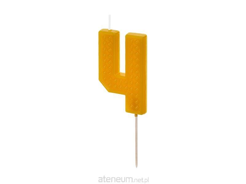 Świeczka urodzinowa Cyferka 4 we wzór klocka w kolorze żółtym, rozmiar ok. 6 cm.
