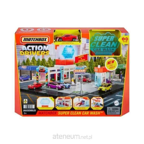 Zestaw Matchbox Action Drivers Prawdziwe Przygody Myjnia samochodowa pozwala dbać o auto i wypucować je na błysk! Wjedź do myjni, gdzie elementy takie jak wałki czyszczą samochody i przygotowują je do trasy. Podjedź na stanowisko woskowania i polerowania, a figurka pracownika automatycznie zacznie pracować nad wyglądem pojazdu, aby był jak nowy. Otwórz drzwi sklepu, aby wybrać przekąski na drogę i zapłacić, a potem pozbądź się okruszków za pomocą ruchomego węża do odkurzania. Światełka i dźwięki zestawu są niezwykle realistyczne, przywołując na myśl prawdziwą myjnię. Zestaw zawiera też jedno autko Matchbox Chevrolet® Corvette, a do tego łączy się z innymi zestawami, co poszerza możliwości zabawy. Kolory i elementy dekoracyjne mogą się różnić.