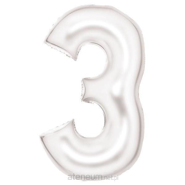 Balon foliowy cyfra 3 satynowy biały zapakowany 86 cm