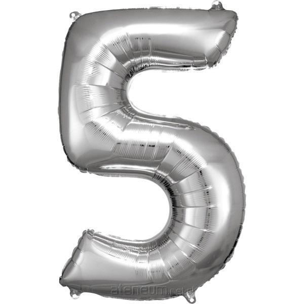 balon foliowy cyfra 5 srebrny zapakowany 57 cm x 86 cm