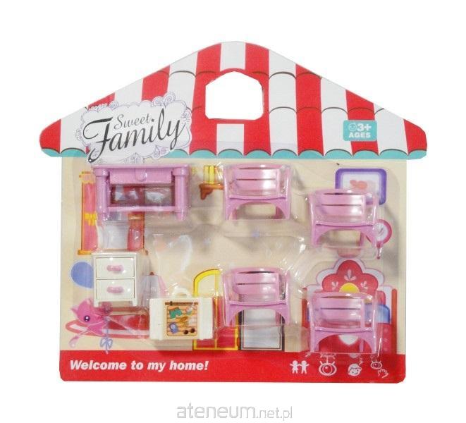 Zestaw pokojowych mebelków dla dzieci. stolik, szafka, 4 krzesła i walizka. Produkt zapakowany w kartonową podstawkę z przezroczystym kloszem. Zabawka dla dzieci od 3 lat. Podane wymiary są wymiarami opakowania.