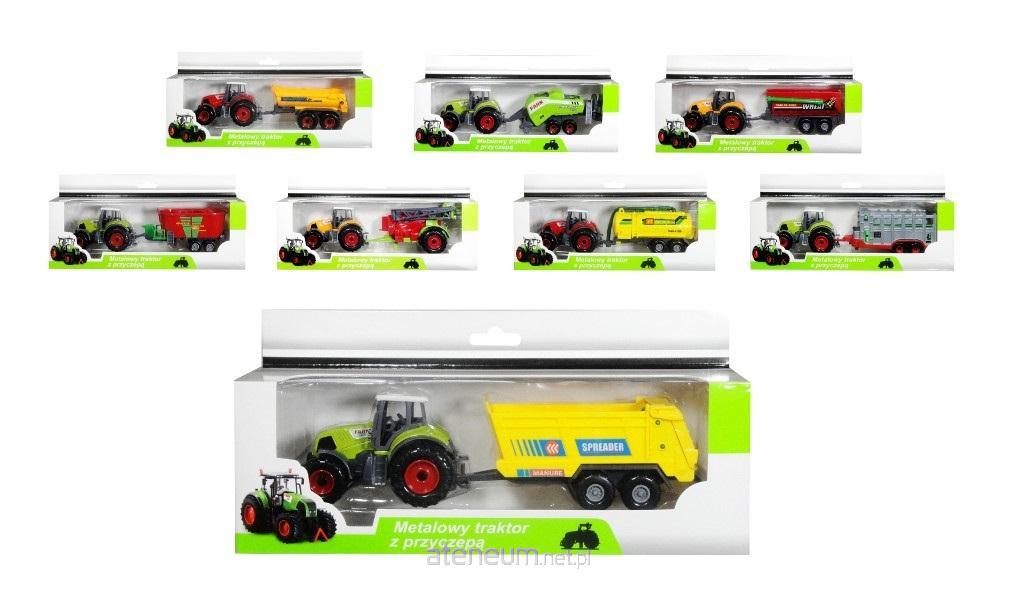 Plastikowo-metalowy traktor z przyczepą. Zbierz wszystkie modele! Zamieniaj traktory i przyczepy! Produkt występuje w kilku wersjach kolorystycznych, wybierany losowo. Cena dotyczy jednej sztuki. Zabawka dla dzieci od 3 lat. Podane wymiary są wymiarami opakowania. Zabawka zapakowana w kartonowe opakowanie z przezroczystym okienkiem.