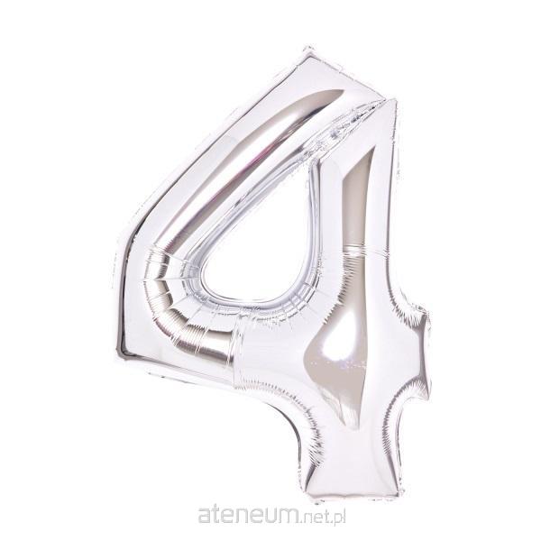 Balon foliowy cyfra 4 srebrna 51 cm x 66 cm
