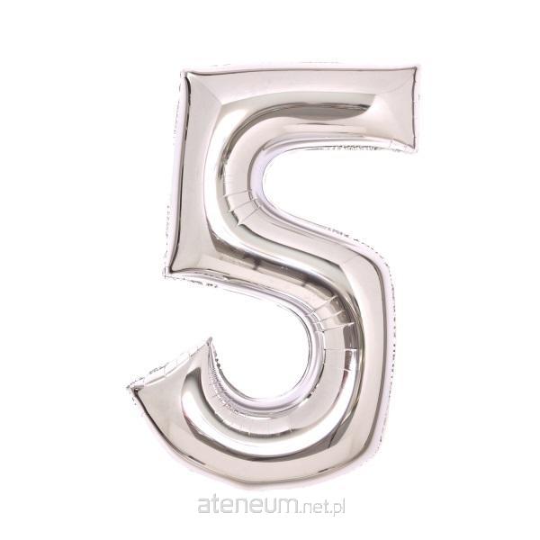 Balon foliowy cyfra 5 srebrna 52 cm x 66 cm