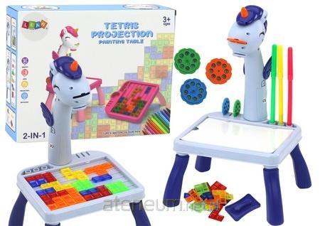Mini Projektor Stolik Tetris 2w1 Jednorożec Niebieski Mini Projektor do nauki rysowania z tetrisem 2w1 to niezwykła zabawka, która nie tylko bawi, ale także uczy poprzez interaktywną rozrywkę. W kolorze niebieskim designie, zachęca każdego małego artystę do odkrywania swojego talentu i rozwijania zdolności plastycznych już od najmłodszych lat. To narzędzie stymuluje wyobraźnię, ćwiczy spostrzegawczość i pamięć dziecka, a także rozwija jego zdolności manualne. Dzięki projektowi rysowania, maluch może eksperymentować z różnymi wzorami i kształtami, a jednocześnie doskonalić swoje umiejętności artystyczne, co z pewnością przyniesie korzyści w przyszłej nauce w przedszkolu i szkole. W zestawie znajdują się aż 3 wymienne krążki z rysunkami, z łącznie 24 wzorami, które inspirują do tworzenia pięknych dzieł. Ponadto, układanka tetrisa z różnymi klockami zapewnia dodatkową frajdę i pozwala rozwijać logiczne myślenie oraz umiejętności planowania. Dzięki możliwości malowania bezpośrednio na podstawie przy użyciu mazaków, dzieci mogą tworzyć swoje własne unikalne dzieła sztuki. Zmazywanie rysunków jest równie łatwe, dzięki dołączonej gąbce, co zachęca do eksperymentowania i tworzenia nowych projektów. Dodatkowo, zestaw zawiera 12 mazaków w różnych kolorach, co pozwala na tworzenie kolorowych i efektownych rysunków. Nie tylko dzieci będą zachwycone możliwościami tej zabawki. Rodzice także docenią jej wartość edukacyjną i rozwijający charakter. Projektor do nauki rysowania z tetrisem 2w1 to nie tylko zabawka, ale także narzędzie do nauki i kreatywnej zabawy, które zapewni długie godziny radości i fascynujących odkryć. Idealny prezent dla każdej małej artystki, która pokocha tworzenie i zabawę z tym niezwykłym projektem. Projektor zasilany jest na baterie 2x 1.5V AA, które nie są elementem zestawu. Wymiary stolika: 33cm x 20cm x 17cm Wymiary opakowania: 23cm x 18,5cm x 7cm Posiada certyfikat CE, ponadto jest zgodny z normą EN71. Przeznaczony dla dzieci od 3 roku życia.
