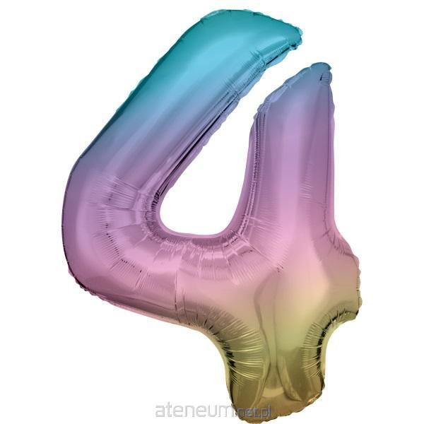 Balon foliowy cyfra 4 tęczowa pastel 65 cm x 86 cm