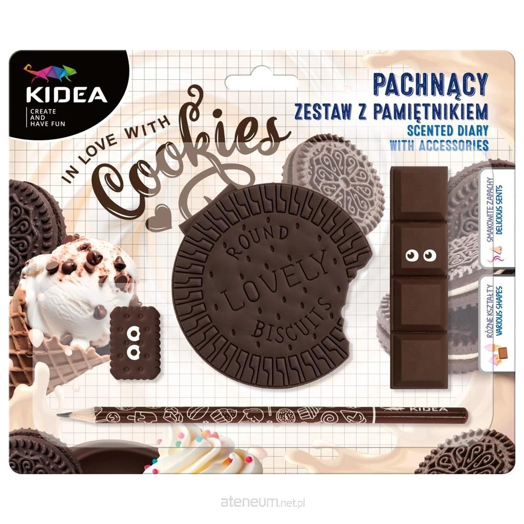 Pamiętnik o smakowitym waniliowym zapachu z dwoma równie słodkimi gumkami do mazania: ciasteczkiem i czekoladą oraz ołówkiem o twardości rysika HB. Pamiętnik w kształcie ciastka pomieści w swoim wnętrzu wiele sekretów i marzeń. Smakowite gumki wymażą każdy błąd ołówka. Zapachowy pamiętnik z akcesoriami sprawdzi się również jako szkicownik dzięki gładkim kartkom oraz jako wyjątkowy prezent na każdą okazję.