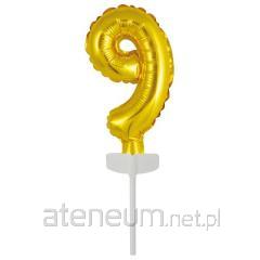 Balon foliowy mini cyfra 9 złota 7x12cm