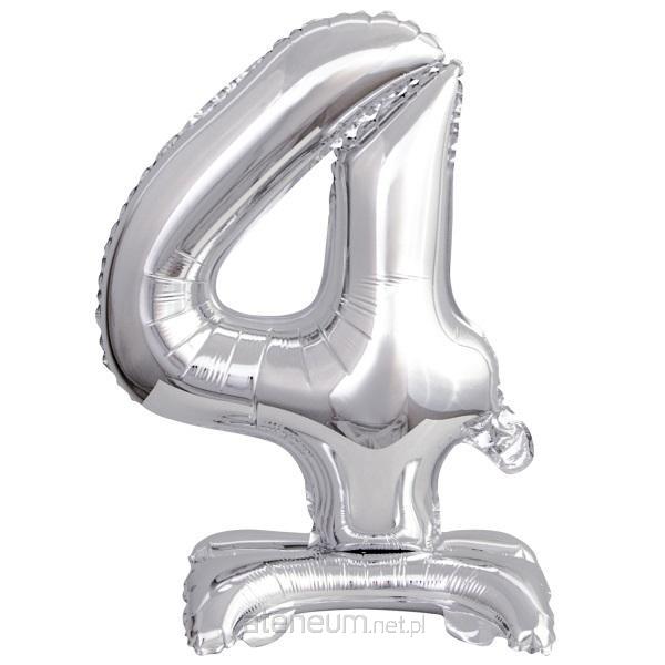 Mini cyfra 4 na stojaku srebrny balon foliowy zapakowany 22 cm x 40 cm