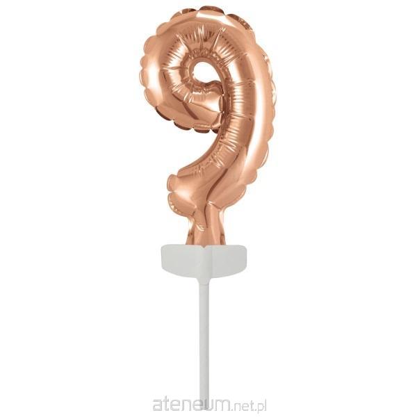 Balon foliowy mini cyfra 9 różowe złoto 7 cm x 12 cm