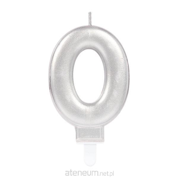 Świeczki cyferki 0 Sparkling Celebrations z uchwytem srebrna 9.3 cm