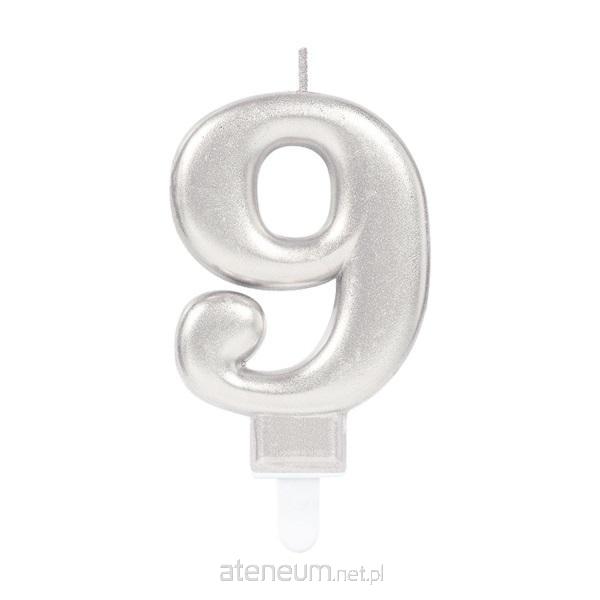 Świeczki cyferki 9 Sparkling Celebrations z uchwytem srebrna 9.3 cm
