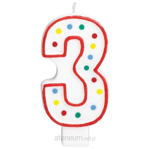 Świeczka urodzinowa cyferka 3 biała w kropki