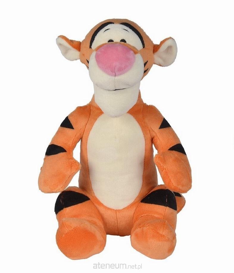 Pluszowa maskotka Tygryska z podrukowanymi czarnymi paskami, oczy i uśmiech są wyszywane