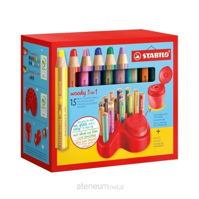 Zestaw 15 kredek woody 3in1 z temperówką w pojemniku. STABILO woody 3 in 1 to super grube kredki, które wystarczają na bardzo długo.